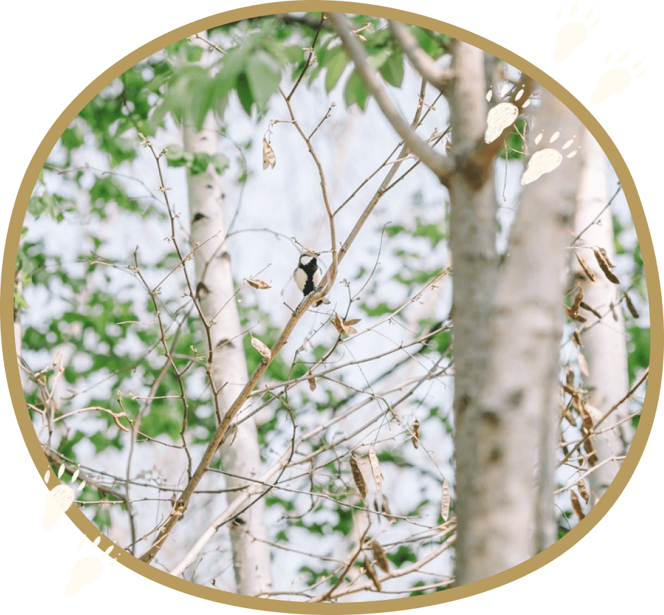 ザワザワ村にはふたつのエリアがあります。「はじめのザワザワ村」と、2024年に新しくできた「もっとザワザワなザワザワ村」。その名を「タンネの小道」と申します。